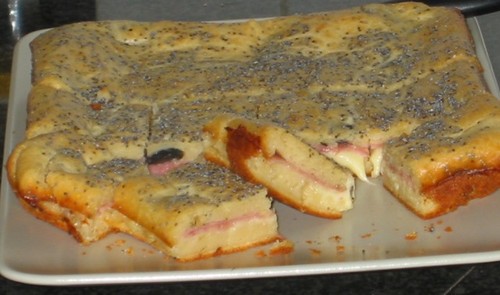 Por cima deita-se a restante massa que se polvilha com sementes de papoila.