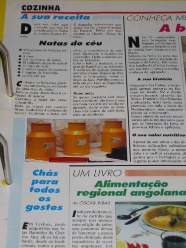 Havia um espaço para os leitores, se quisessem colocar questões ou enviar receitas. Nessa época eu não tinha o menor gosto pela cozinha e apenas sabia fazer bem Esparguete à Bolonhesa e Natas do Céu.