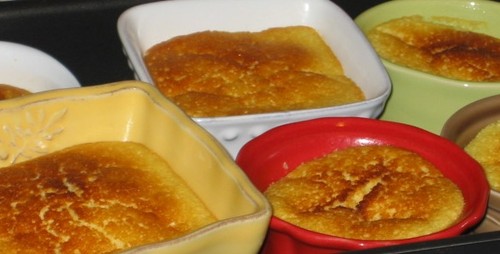 Deitar em forminhas untadas com manteiga (ou numa forma ou pyrex grandes) e colocar num tabuleiro com água a ferver. A água deve chegar a meio das formas.