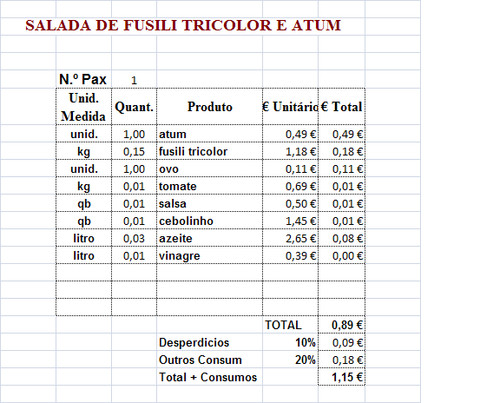 a salada comprada foi 4,50€. Como podem ver na ficha utilizada, a que fiz (já contemplando desperdícios e outros consumos [água, gás, etc.]) fica pela módica quantia 1,15€;