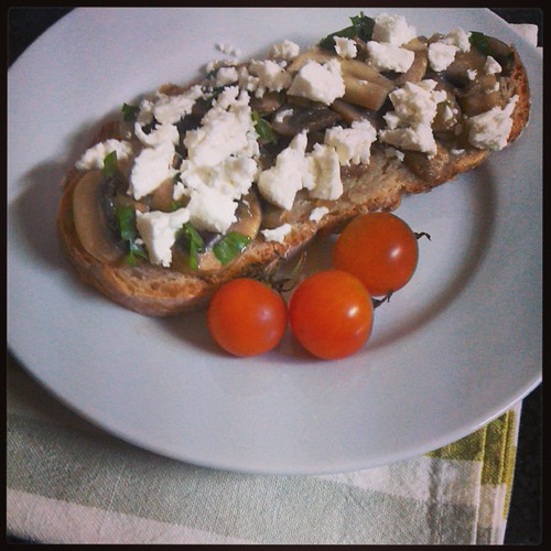 Tostas de cogumelos e queijo Feta