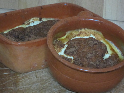 Deita-se o preparado numa forma de barro untada com manteiga e polvilha-se de canela em pó.
