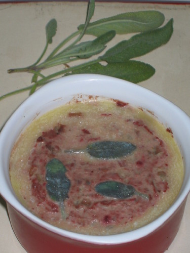 Por cima põe-se um pouco de manteiga derretida e as folhas de salva, para enfeitar.