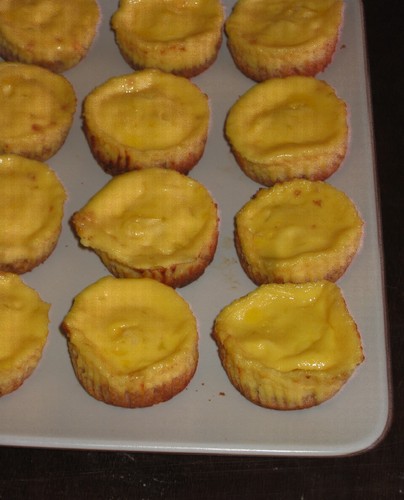Retirar do forno e deixar arrefecer. Retirar as forminhas de papel e levar as tartes ao frigorífico.