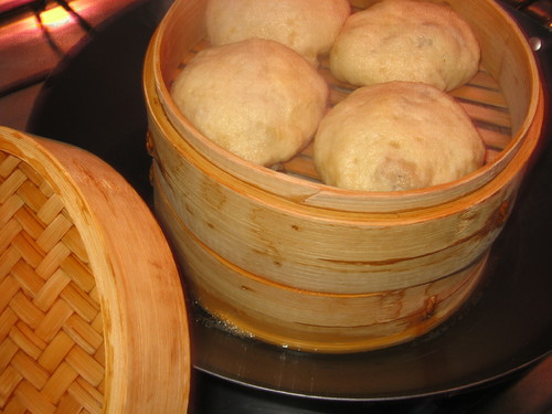 Uma das coisas que fez ali num instantinho, deixou-me mesmo com vontade de experimentar porque a) tinha sobras de lombinho de porco assado congeladas; b) tinha um cesto de bambu para cozer a vapor aí há uns cinco anos que nunca tive desculpa para usar e c) porque não posso ver nada, ou como se costuma dizer: sou como o Zé da Carriça, tudo o que vê, tudo cobiça…